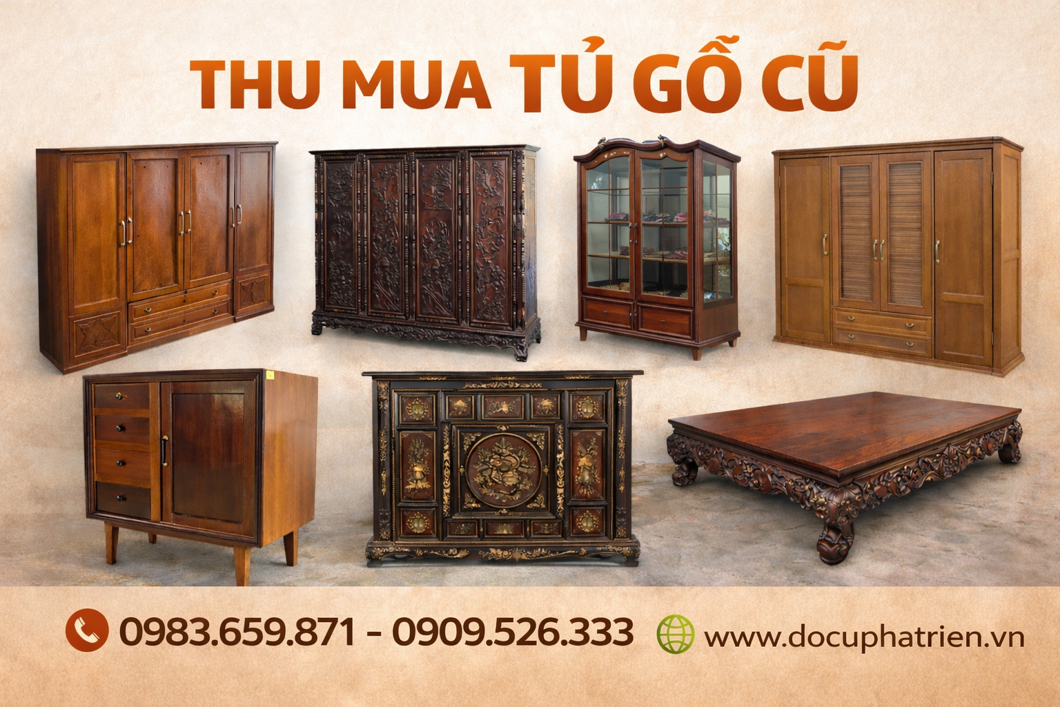 Nếu bạn đang có nhu cầu thu mua tủ gỗ cũ TPHCM, đừng để nội thất cũ chiếm diện tích và mất giá theo thời gian. Hãy liên hệ ngay ĐỒ CŨ PHÁT TRIỂN để được tư vấn và báo giá nhanh nhất.